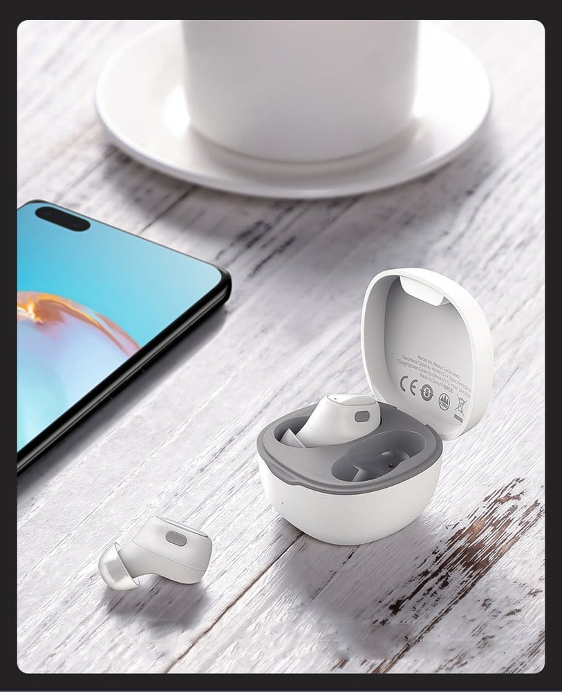Baseus vezetéknélküli Bluetooth fülhallgató fehér színben, iPhone, Samsung, Sony, stb. Bluetooth képes telefonokhoz, eszközökhöz