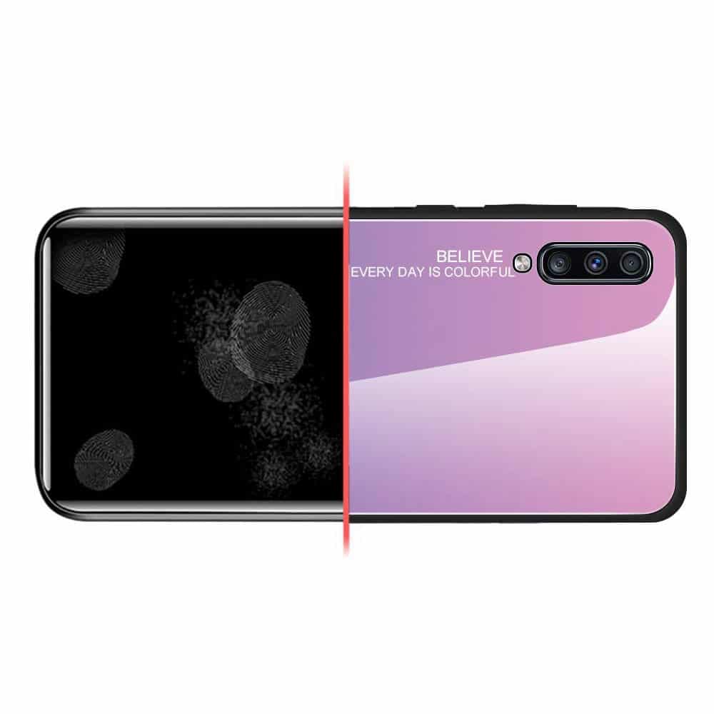 Színátmenetes Samsung Galaxy A70 tok edzett üveg hátlappal