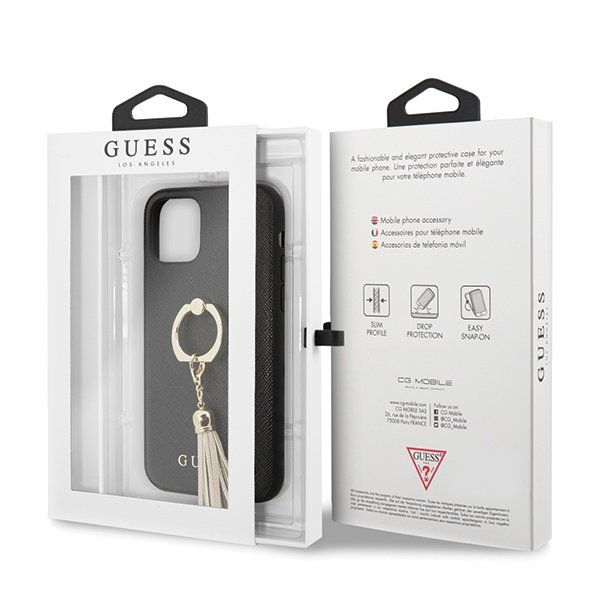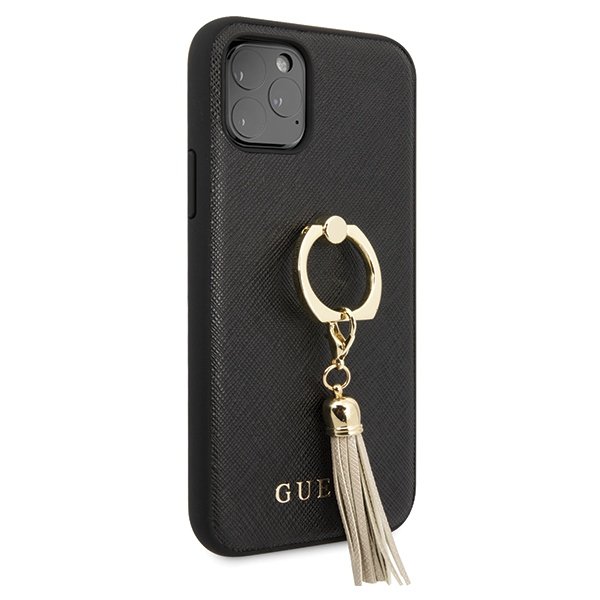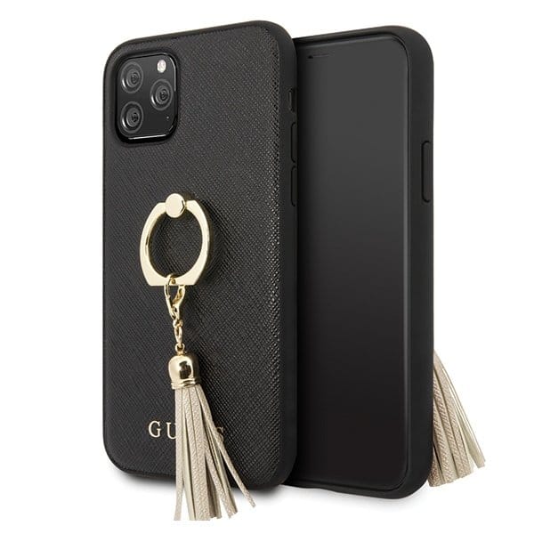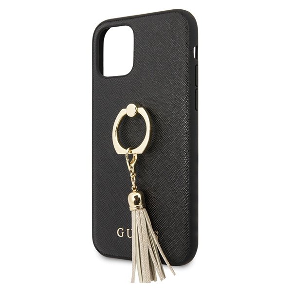 Guess Saffiano iPhone 11 Pro telefontok gyűrűvel (fekete)