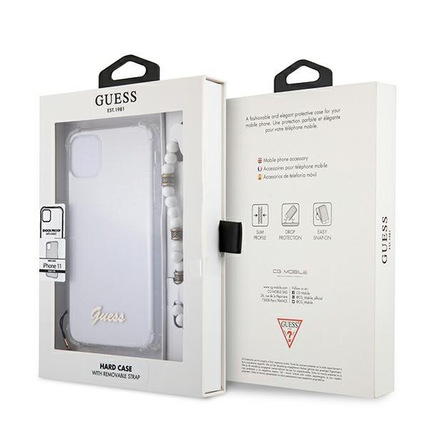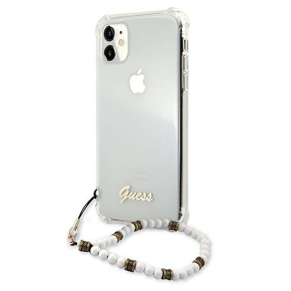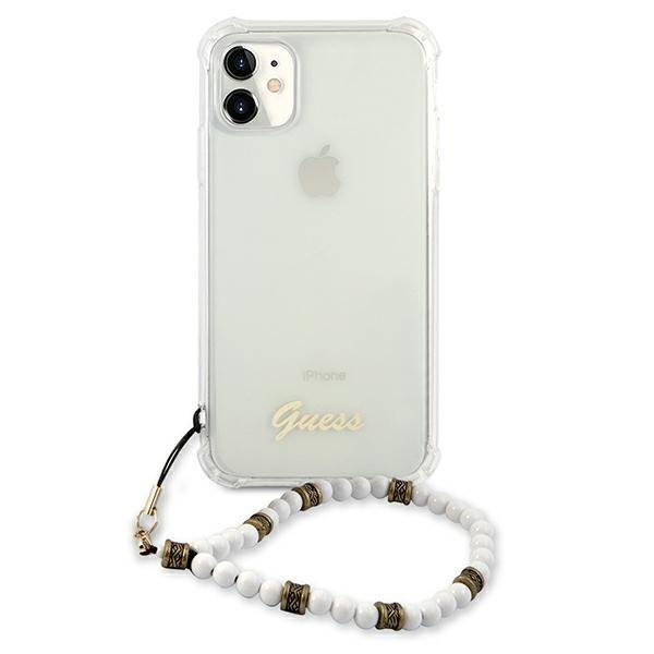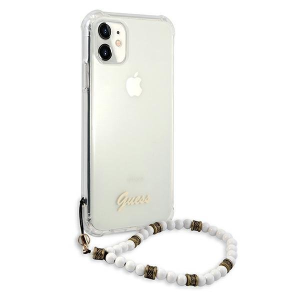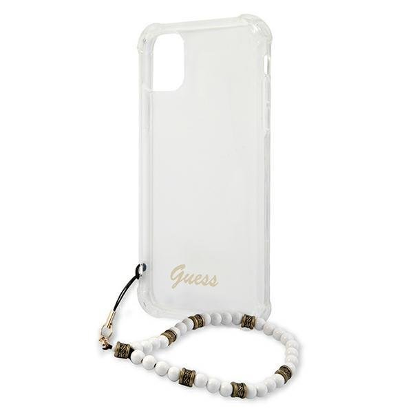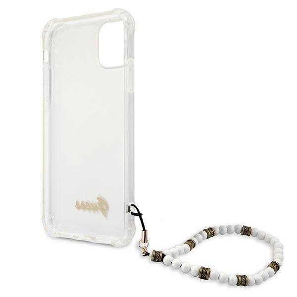 Guess White Pearl Collection iPhone 11 telefontok gyöngysorral (átlátszó)