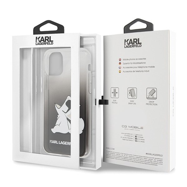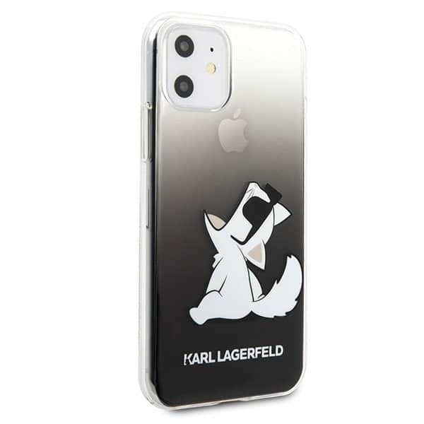 Karl Lagerfeld fekete egyedi telefontok, Choupette macskájával, iPhone Xr, X/Xs, Xs Max, 11, 11 Pro és 11 Pro Max típusokra.