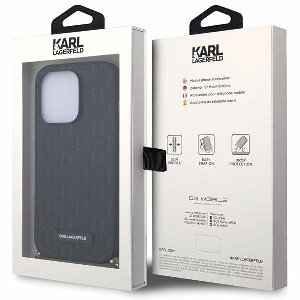 Karl Lagerfeld Saffiano Monogram Chain iPhone 14 Pro Max telefontok lánccal (fekete)