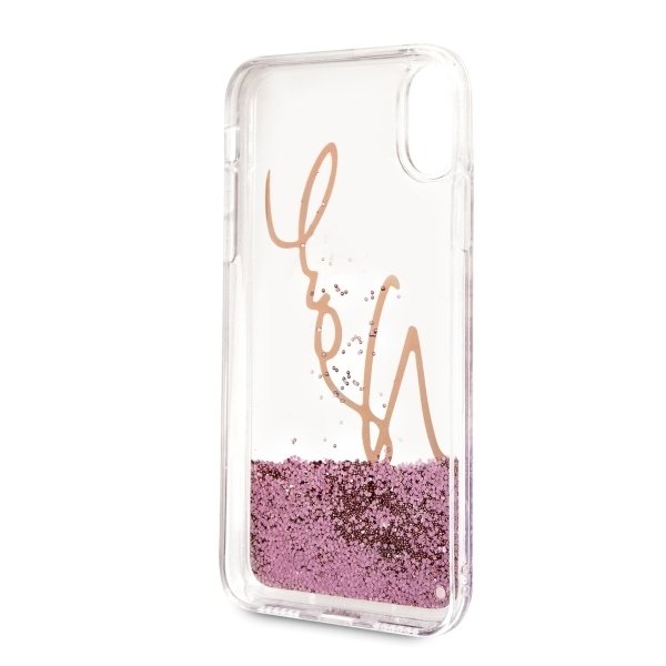 Karl Lagerfeld Signature Liquid Glitter iPhone Xs Max telefontok (rózsaszín)
