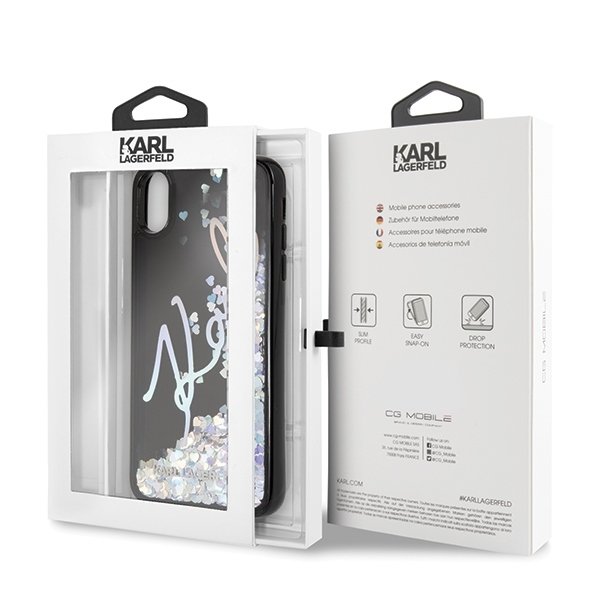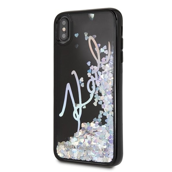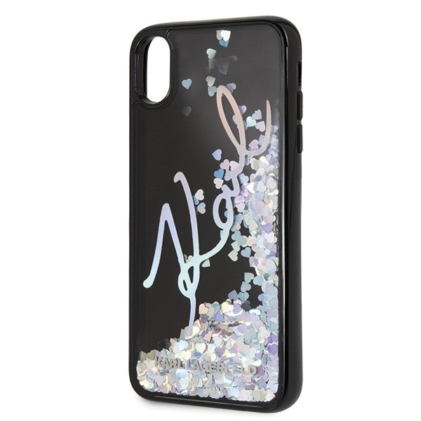 Karl Lagerfeld Signature Liquid Glitter Sequins iPhone Xs Max telefontok (fekete)
