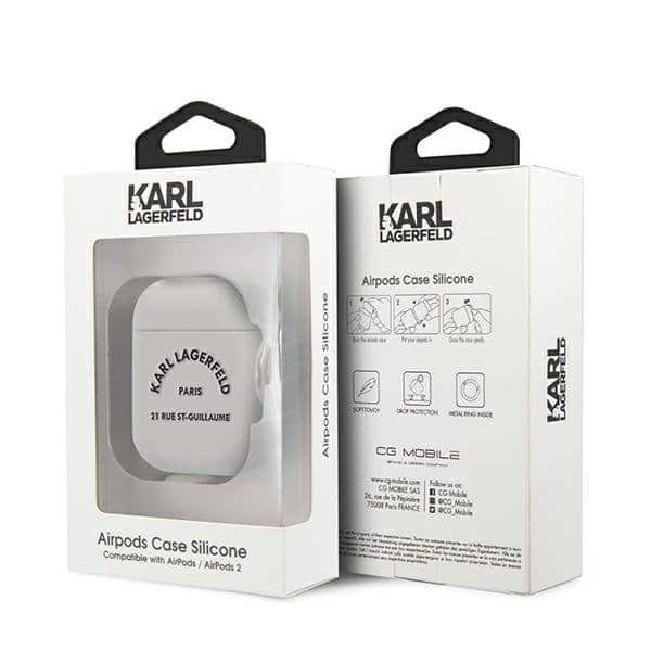 Minőségi AirPods tartó Karl Lagerfeld divattervező feliratával. A tok védi az AirPods eszközünket a mindennapi külső behatásoktól, karcolásoktól.
