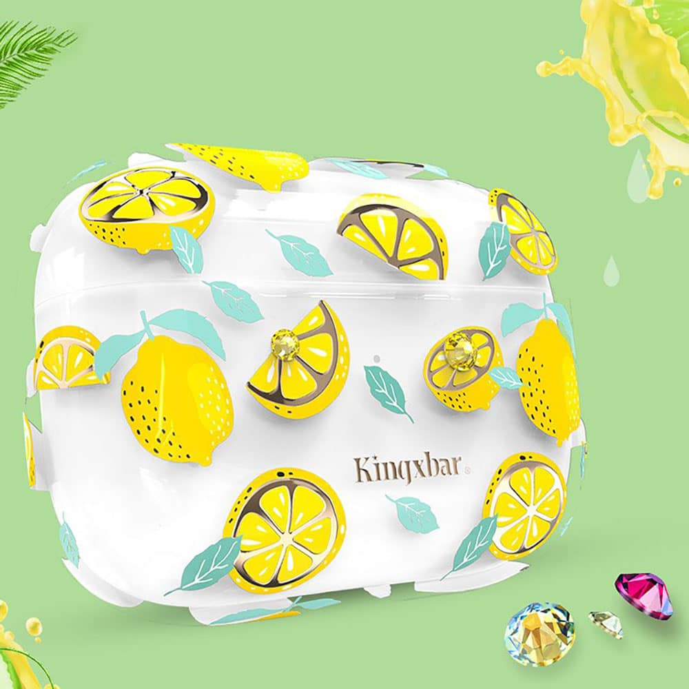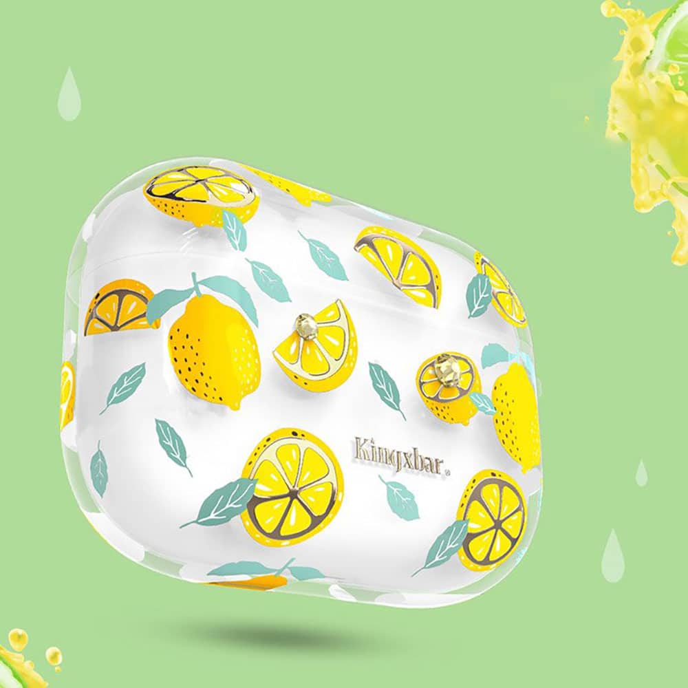 Kingxbar Fresh átlátszó AirPods tartó citrom mintával és strasszkövekkel