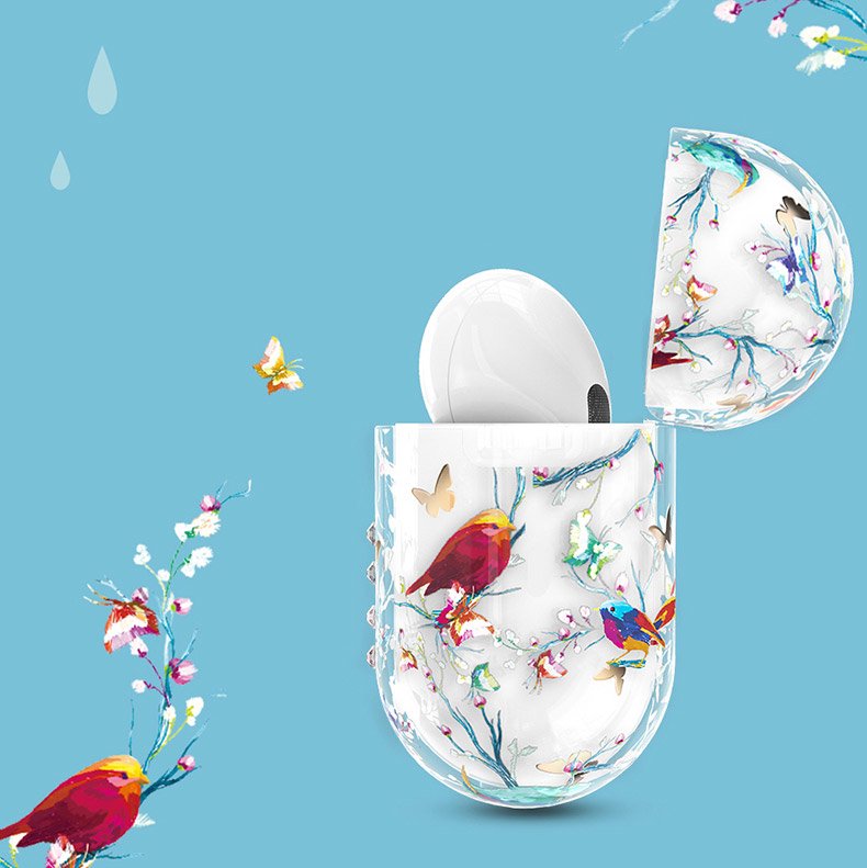 Kingxbar Fresh áttetsző AirPods Pro tartó madár mintával