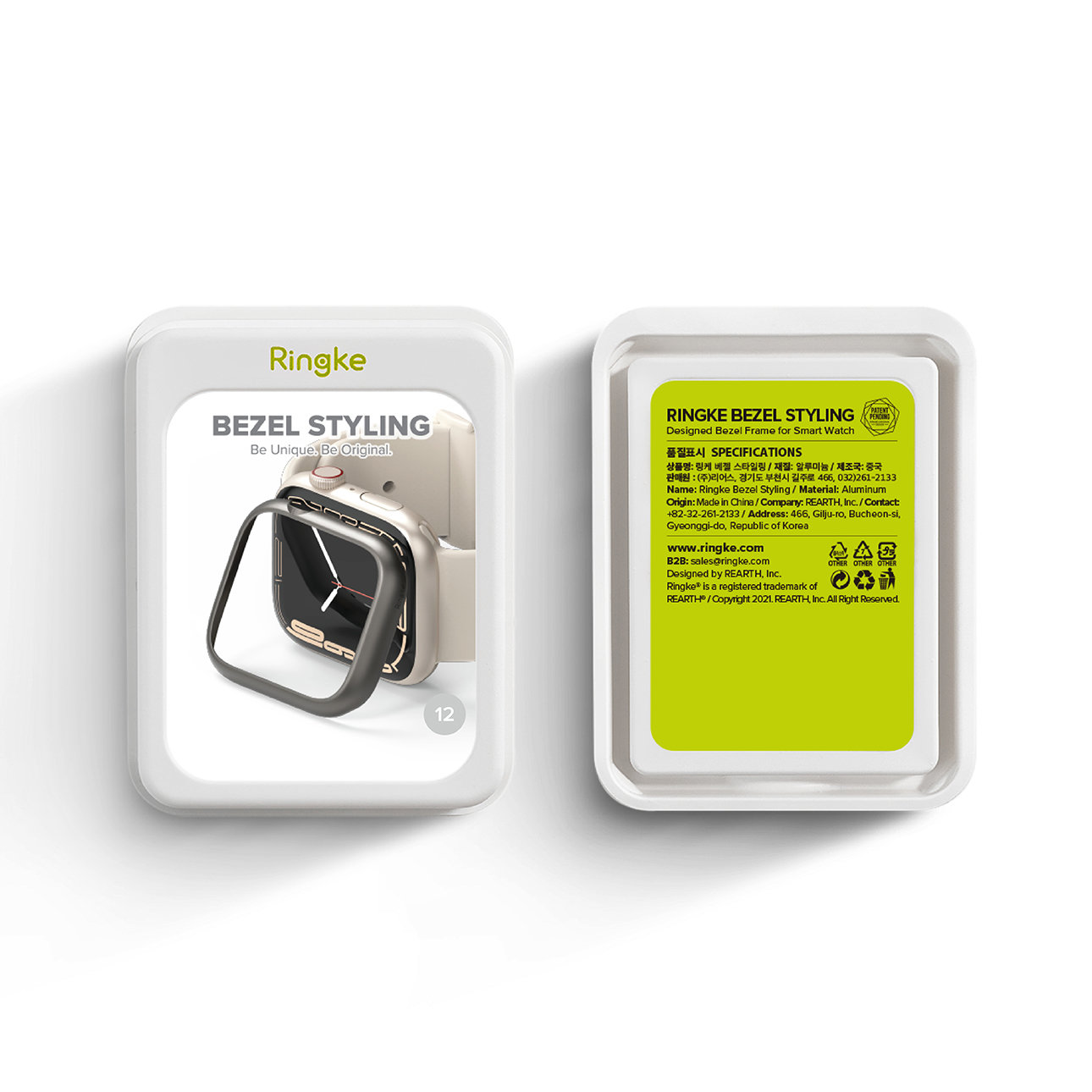 A Ringke által gyártott előlap a Bezel Styling sorozatból azoknak szól, akik szeretnék kiemelni az okosórájukat, és egyben megvédeni a sérülésektől. A tok erős és könnyű rozsdamentes acélból készült. Védi az óra előlapját a karcolásoktól, és kissé megemelt peremet hoz létre a képernyő közelében, ami megakadályozza a képernyő karcolódását, ha sík felületen fekszik.