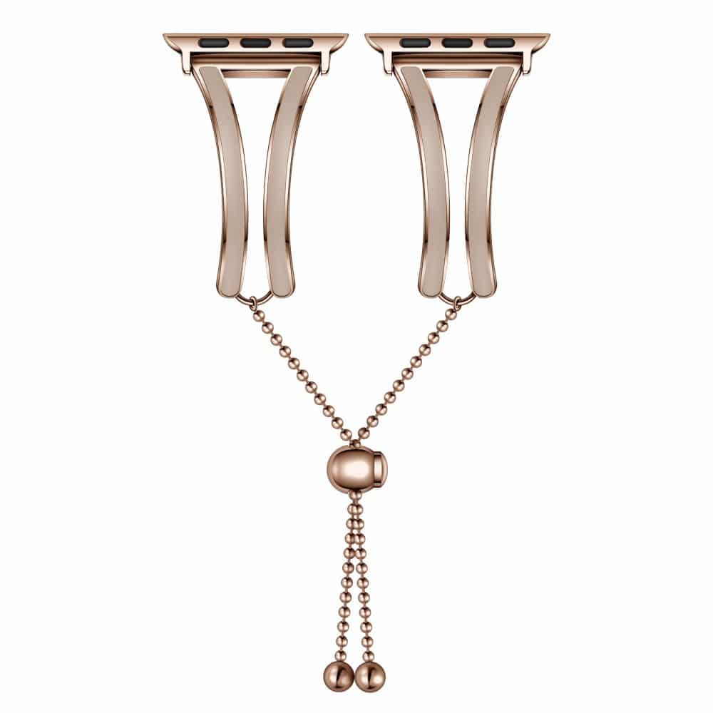 A Tech-Protect Chainband fémszíj igazán különleges kiegészítője lehet az Apple Watch óráknak. Gyöngysoros lánca, és arany színe elegáns megjelenést kölcsönöz az óraszíj viselőjének. Akár ékszer helyett, kiegészítőként is megállja a helyét. Rendkívül stílusos, finom, nőies megjelenést biztosít a hölgyeknek.