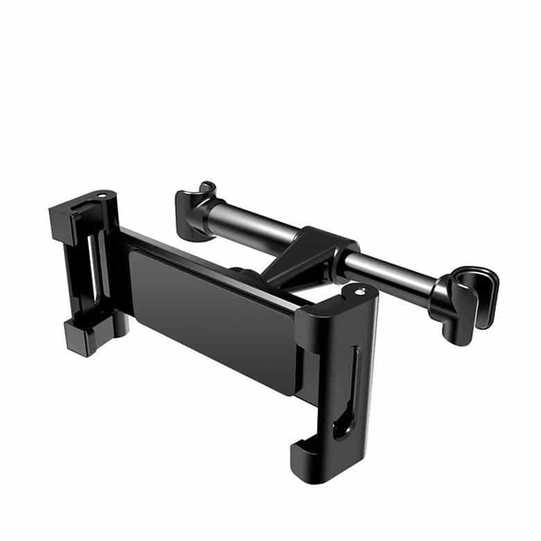 Fejtámlára rögzíthető autós okostelefon és tablet tartó.