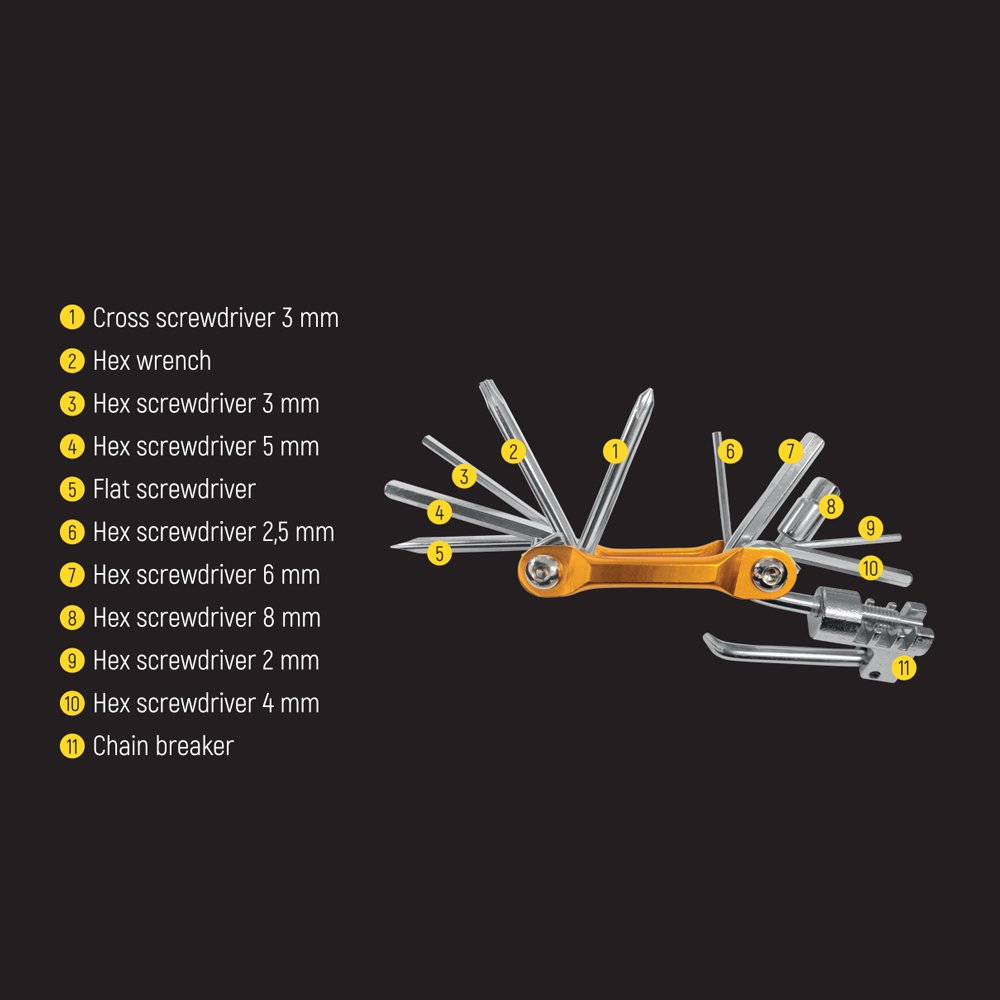 11 az 1-ben csavarhúzó készlet kerékpárosoknak.