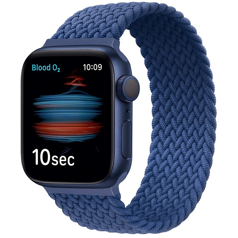 Sötétkék fonott Apple Watch óraszíj.